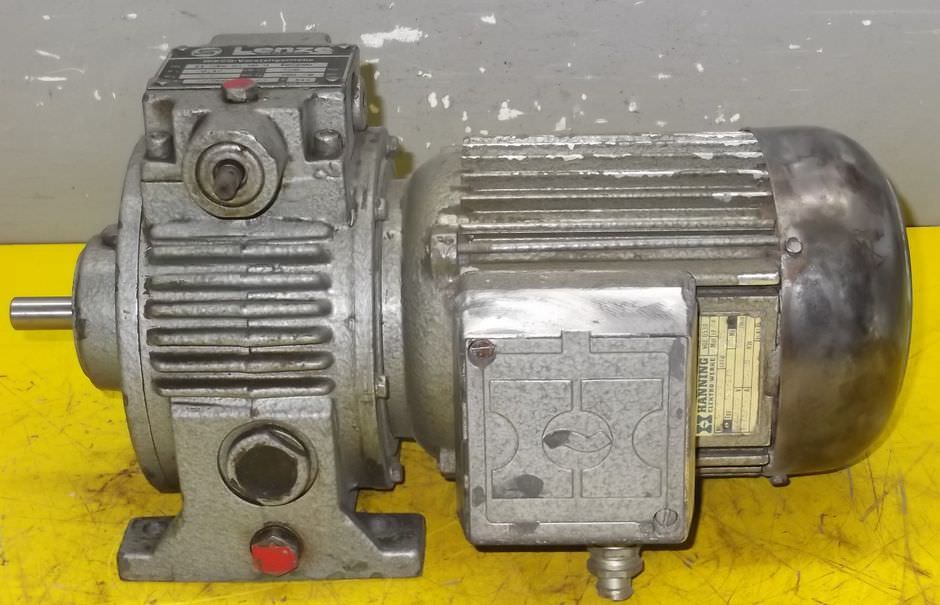 adjustable gear motor, variable speed gear motor, electric motor -Manufacturer gearbox: Lenze Type: 11.512.03.00.0 -Manufacturer engine: Hanning type: 7A8-271 -Motor power: 0.18 kW / 380 volts -Speed range: 82-490 rpm -Design: adjustable -Design: B3 -Height of shaft axis: 78 mm -Drive shaft: Ø 14 mm -Quantity: 3 engines available -Price per piece -Dimensions: 360/204/H190 mm -Weight: 18kg