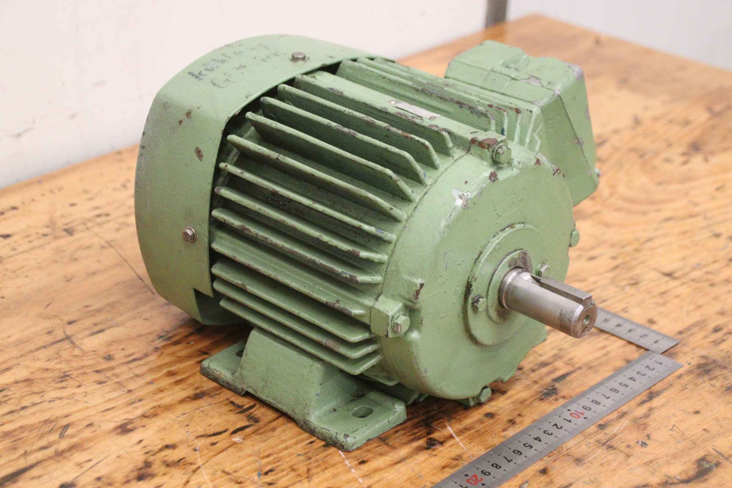 Geared motor, electric motor, three-phase motor, electric geared motor -Handed over in its current condition, foot defective (see photos) -Speed: 165 rpm -Power: 0.75 kW -Design: B3 -Shaft diameter: Ø 25 mm -Protection class: IP 54 -Quantity: 1 available - Price: per piece -Dimensions: 450/140/H200 mm -Weight: 18.3 kg