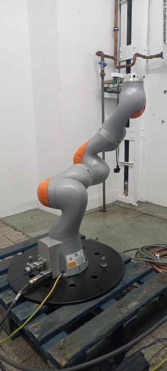 Robô industrial de 6 eixos para manuseamento de componentes com uma carga útil de até 25 kg. Design com classificação IP67, concebido para condições ambientais exigentes e adequado para aplicações em salas limpas ISO 5. Incl. sep. Armário de controlo por robô. 2 robôs do mesmo tipo disponíveis.