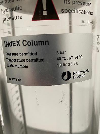 Chromatography column., Volume (L): 3.5 Liters , Allowed pressure: 3 bar , Authorized pressure: 3 bar , Lower tapping: 1, Top tapping: 2, Allowed temperature: 40°C , Bottom stitching: 1, Lower stitching: 1, Top stitching: 2, Top nozzle: 2