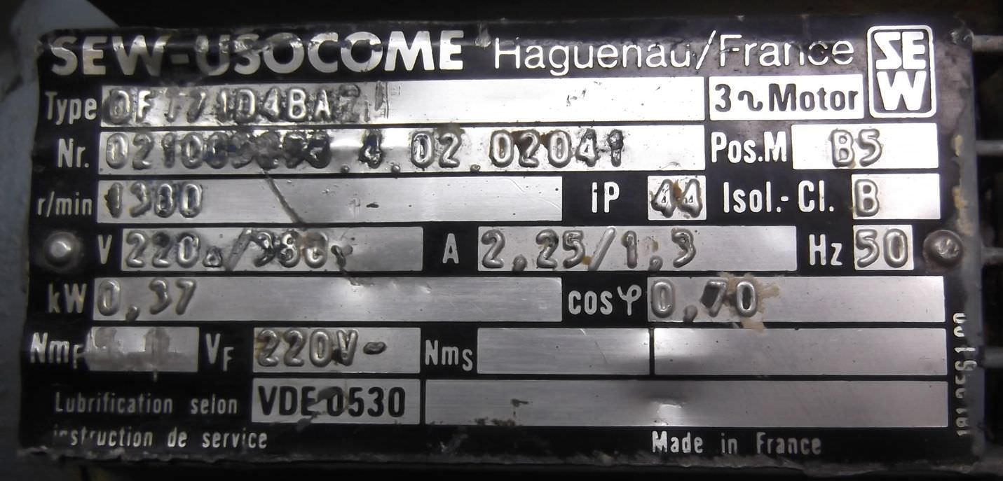 Tipo de máquina: Gear motor 0.37 kW 54 rpm