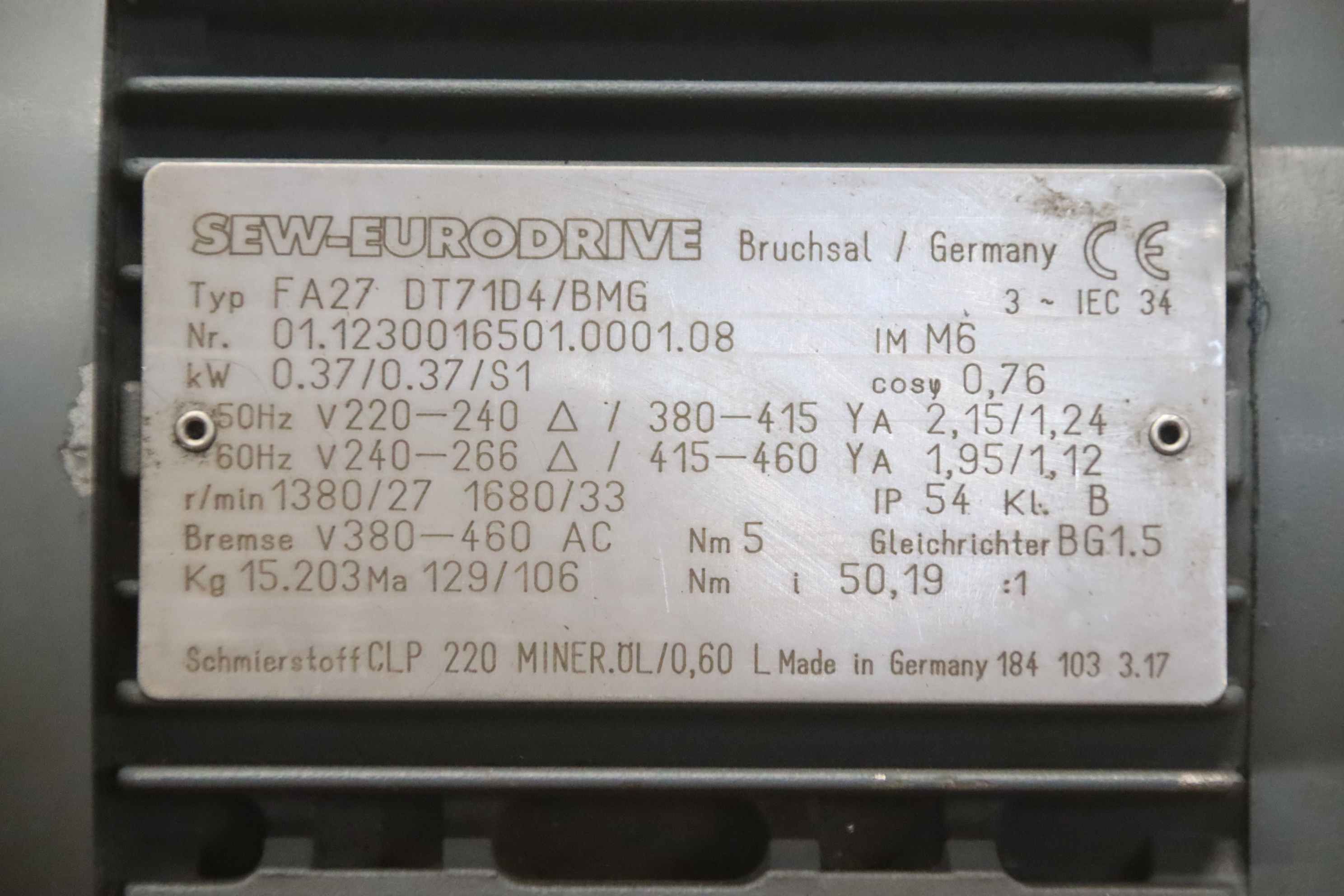 | SEW-EURODRIVE | FA27/II2GD EDRS71M4BE1/3D/KCC/TF/AL | 350 EUR | |