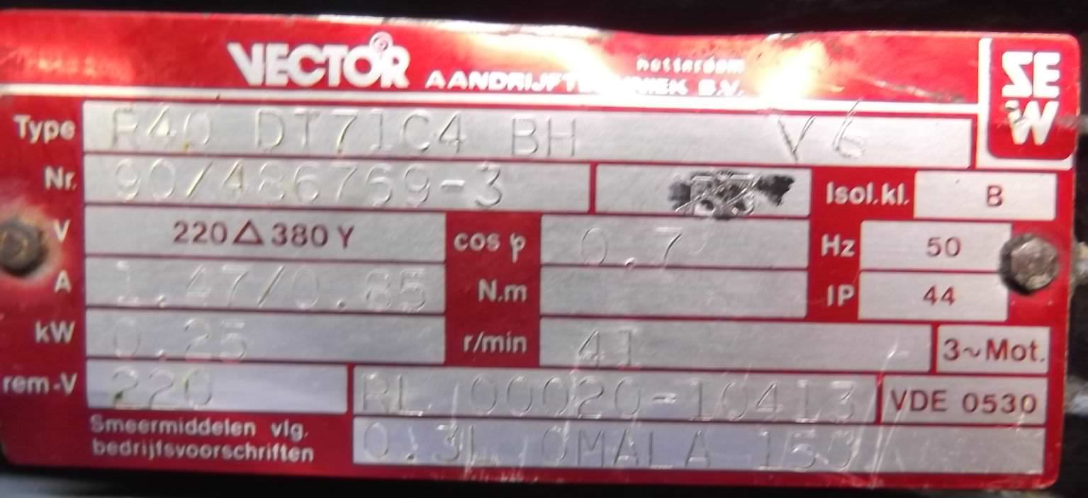 Tipo de máquina: Gear motor 0.25 kW 41 rpm