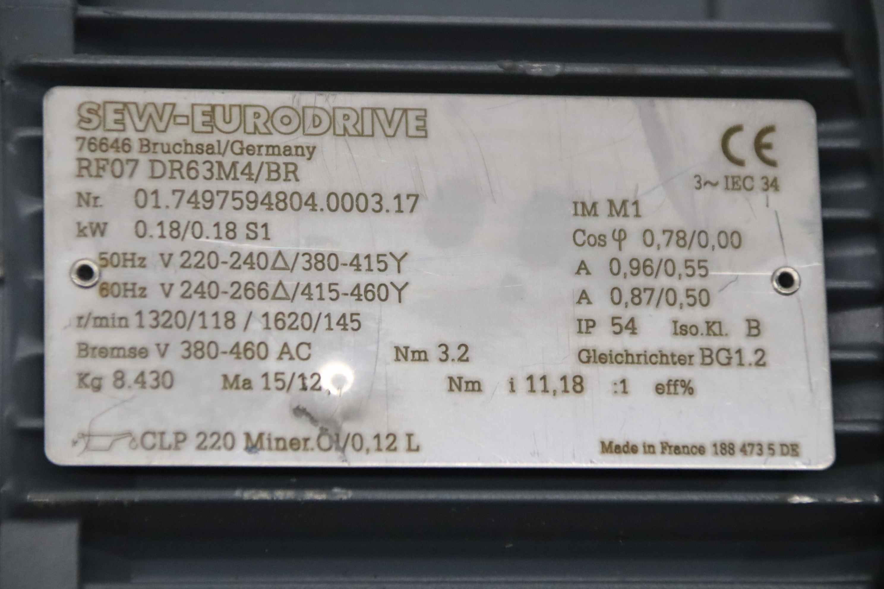 | SEW-EURODRIVE | W20 DR63M4/TF/IS | 220 EUR |