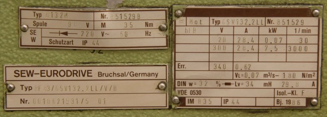 | 1986 | SEW EURODRIVE | RF83/GSV132.2LL/V/B | 2650 EUR |