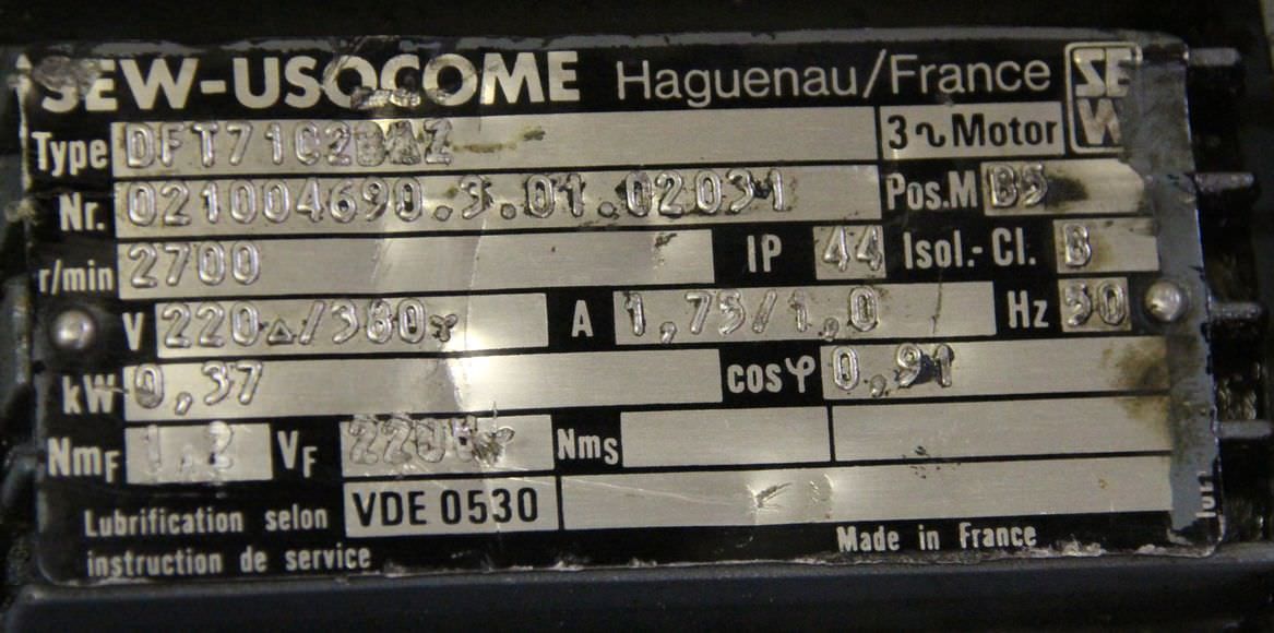 Tipo de máquina: adjustable gear motor 0.37 kW 41-205 rpm