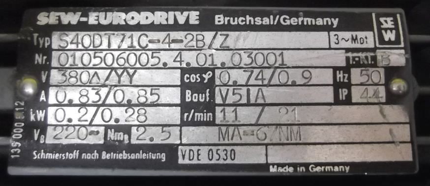 | SEW EURODRIVE | S40DT71C-4-2B/Z | 350 EUR |