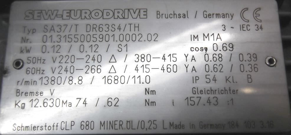 | SEW EURODRIVE | SA37/TDR63S4/TH | 550 EUR |