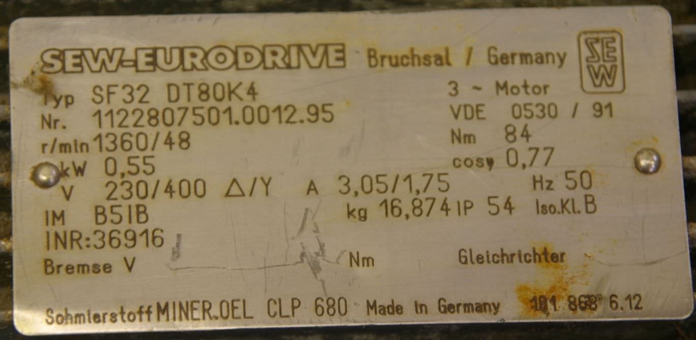 mais SEW Eurodrive SF32 DT80K4 + similar SEW Eurodrive-Modelo
