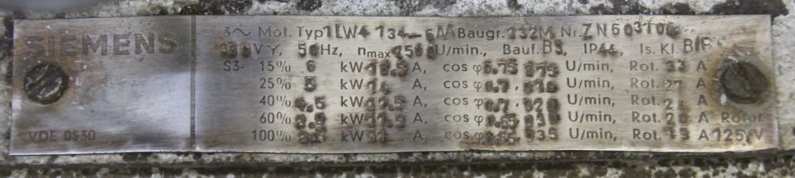 Tipo de máquina: Electric motor 3.5-6 kW 930-875 Rpm
