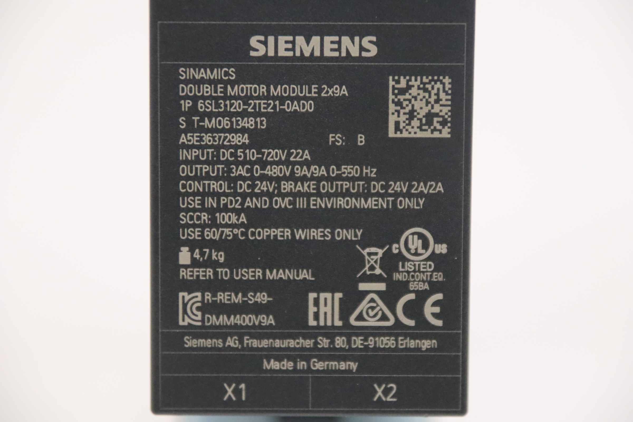 | SIEMENS | 6SL3120-2TE13-0AA4 | 650 EUR | |