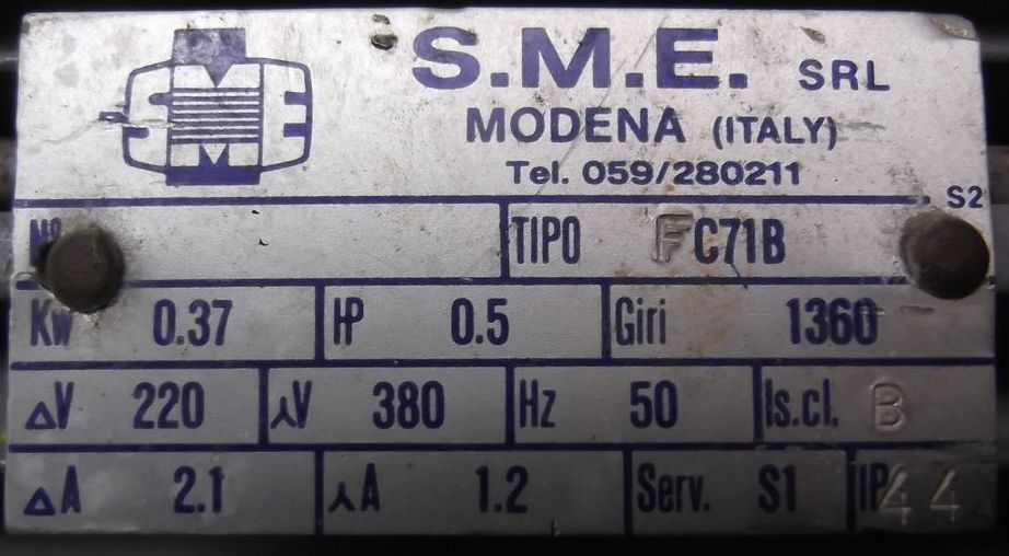 Tipo de máquina: Gear motor 0.37 kW 97 rpm