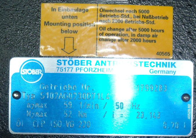 Tipo de máquina: Geared motor 0.37 kW 59 rpm