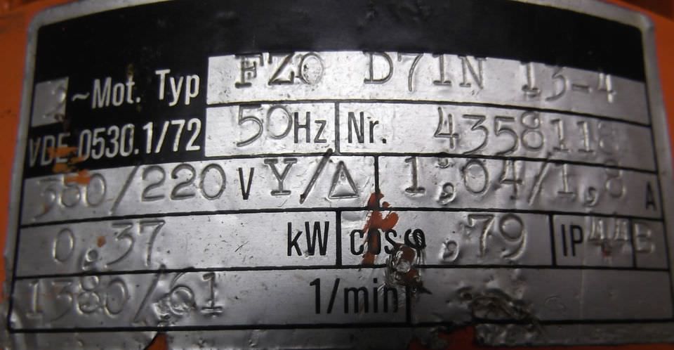 Tipo de máquina: Gear motor 0.37 kW 61 rpm