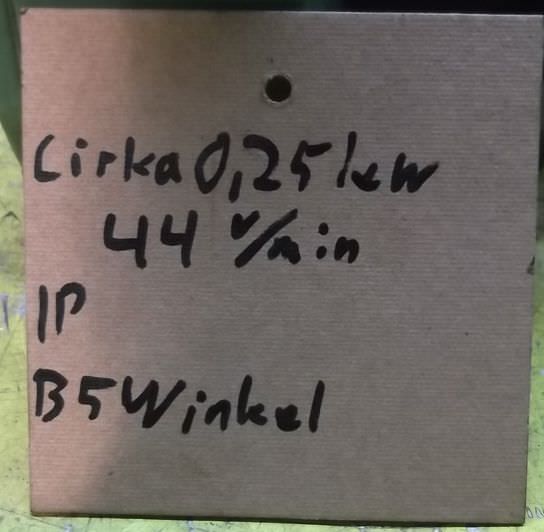 geared motor, electric motor -Speed: 44 rpm -Power output: approx. 0.25 kW -Design: B5 angle -Shaft diameter: Ø 25 mm -Outer flange diameter: Ø 140 mm -Recess: Ø 95 mm -Protection rating: -Number: 1x motor available -Price: per piece -Dimensions: 390/200/H170 mm -Weight: 14.5 ...