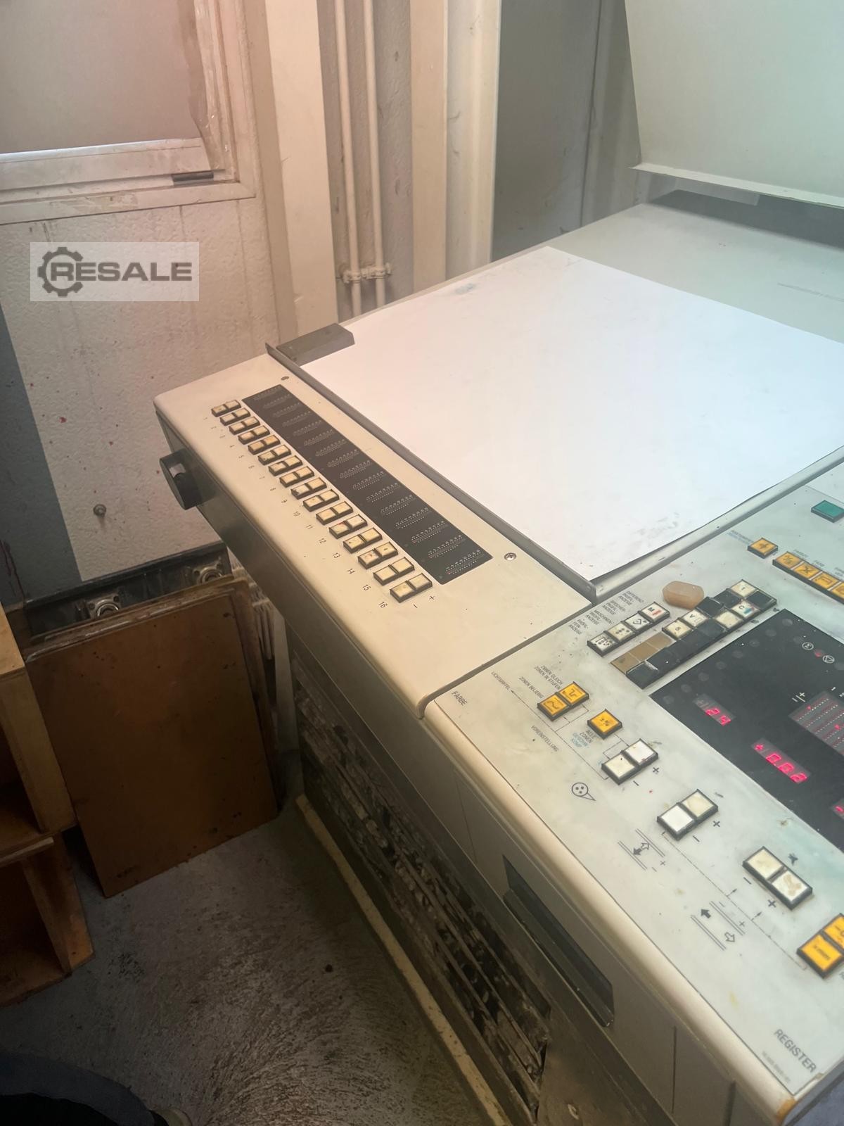 -Cinco cores, tamanho máximo do papel 36x52 cm. -A aperfeiçoar 2/3 ou 5/0 simples -Ano 1995, 68 milhões. impressões reais - Amortecimento Alcolor - Sistema de recirculação e refrigeração Baldwin - Controlo de mesa CPC 1.02 para comandos remotos de motores e placas de tinta -Spray de pó, grampos de placa de ação rápida -Perfurador de placas, sem unidade NP -Com todos os acessórios, sem danos -Em boas condições -Disponível imediatamente