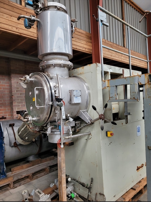 General SKU062F304 MakeImcatec TypeIMR-E200 No.0500 Year of construction1992 LocationBarneveld Pressure Working pressure0 Bar Vacuum possiblecheck Working pressure jacket6 Bar Main Features MaterialStainless steel Volume193 Ltr. Motor31 KW Specified Features - Paddle dryer Turbulent dryercheck Capacity193 Ltr. Trough sizesdia. 600x670mm Inletchecktop connection Dia: 330mm OutletDia: 150mm With jacketcheck 24Ltr. Max. temperature158°C. With mechanical sealcheck Motor21,0/31,0 KW, 380 Volt With lump breakercheck Motor(manufacturer tag is missing) MaterialStainless steel 1.4401 (316) Information Floorspace2,5x2,2m Total height3,0mCatalysts & fillersFeed additivesDiscountOther pharmaceuticsCosmeticsSugarAnimal feedOther feedConfectionerySolid pharmaceuticsDyes & pigmentsBiopharmaceuticalAPIMinerals & inorganicAgrochemicalsBiotechnologyOther chemicalPaddle drye ...