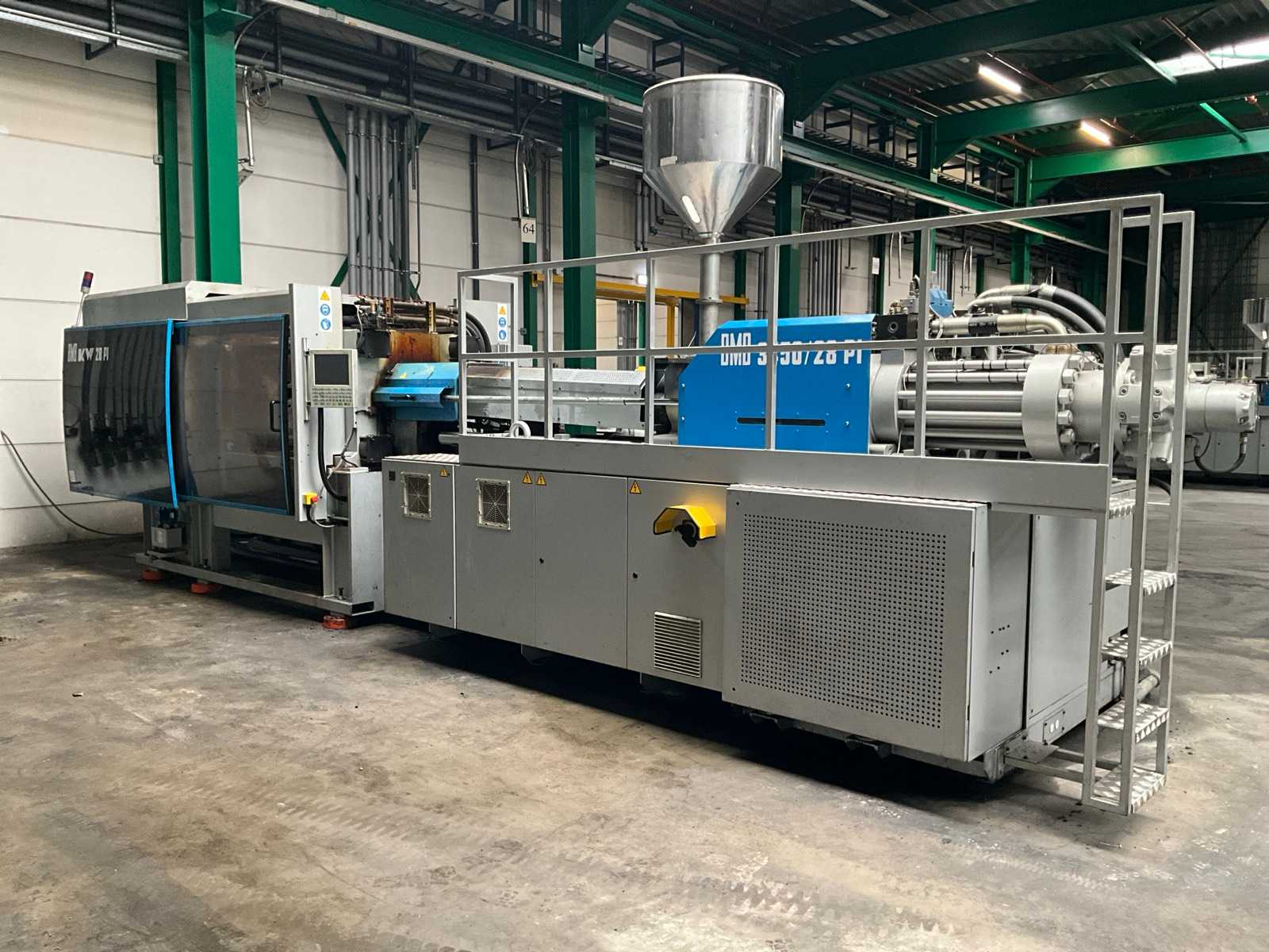 Clamping force: 430 Ton; toggle closure; column passage: 760x680 mm; screw: 60mm; control B&R Columbia; Nr. 2 pneumatic jacks and 2 hydraulic jacks; Nr. 1 air blow; Euromap 12. Serial: 364-112Estimated weight: 19500 kg Approximate dimensions: 8200x1950xh2600 mm Auction-ID: A7-44996-26