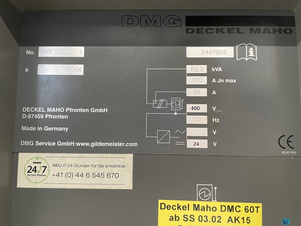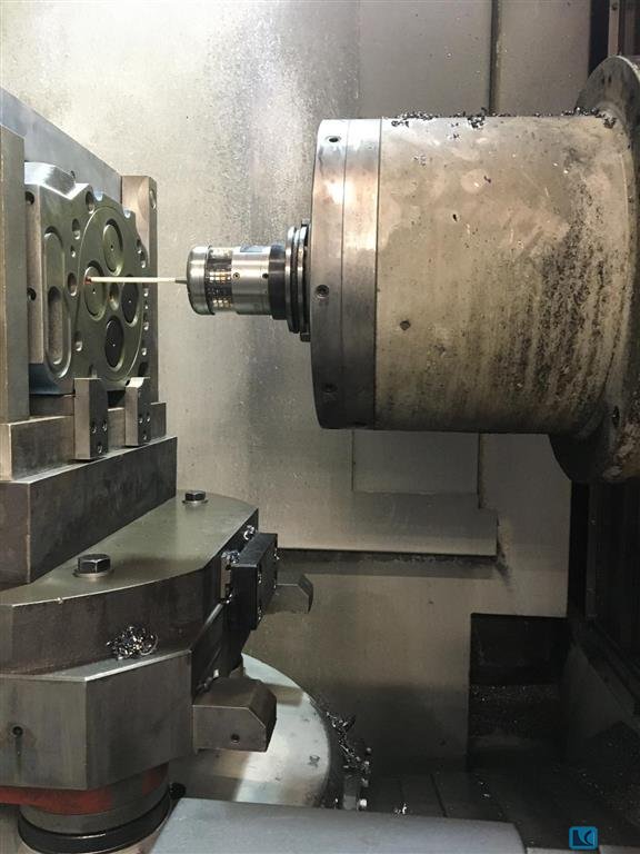 x-travel:1.250 mmy-travel:710 mmz-travel:710 mmtable surface area:1500 x 800 mmtable load capacity:800 kgturning speeds:12000 1/minspindle drive:15 / 10 kWcontrol:MILLPLUS iT HEIDENHAINspindle taper:SK 40 tool change unit:60 Pos.capacity:44 kVAweight of the machine ca.:10,5 tdimensions of the machine ca.:3,5 x 2,65 x 2,65 m5 axis simultaneously machining center,B-axis (-120° / +30°),NC-rotary-table integrated in rigid table,direct measuring system,3D probe infrared, HEIDENHAIN TS 640,internal coolant supply 40 bar, 600l,flushgun,chipconveyor,mode 4,3D quickset software (no hardware),Higher noise in rush on X-axis and roundtable approx. 48.500 hours "machine on" / approx. 18.000 hours "spindle on"