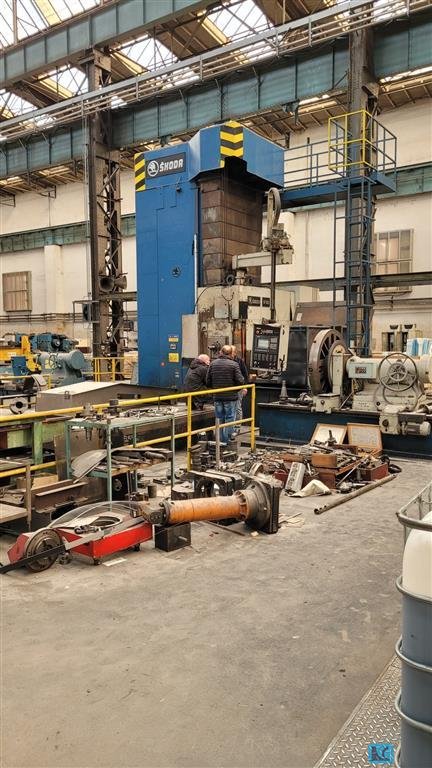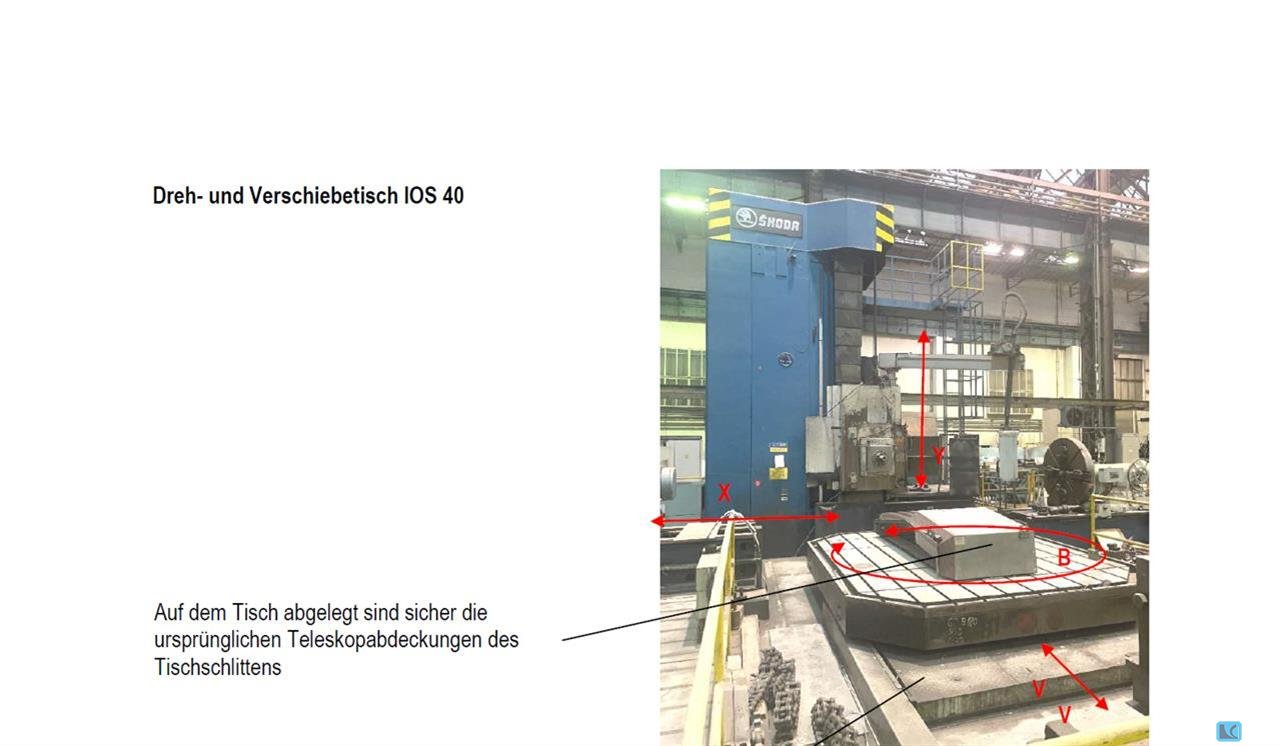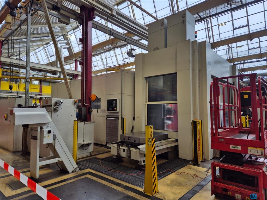 spindle diameter:180 mmx-travel:6.000 mmy-travel:2.900 mmtotal power requirement:95 kWweight of the machine ca.:130 mit Zubehör tz-travel:1.250 Ram mmw-axis:1000 Spindel mmram stroke:1250 mmdimension of the ram:450 x 450 mmbore spindle stroke:1000 mmbore spindle turning speed range:920 1/minpowered rotary table: IOS 40 CNC 2 Achsen B u.V Rotary-table:3000 x 3500 mmRotary-table: CNC-IOS 40 NC mmstepless adjustable, relative to diameter:Index 4x 90° -360000 Winkel =0,001 Grad mmtravel - cross:Längs 1230 mmtable load of rotary table max.:40 Tonnenclamping plate:3 x 8000 x 2000 mmCNC Ram-Type Floor Boring and Milling machine,dismantled and storedThe headstock sliding guides were recoated and scraped.