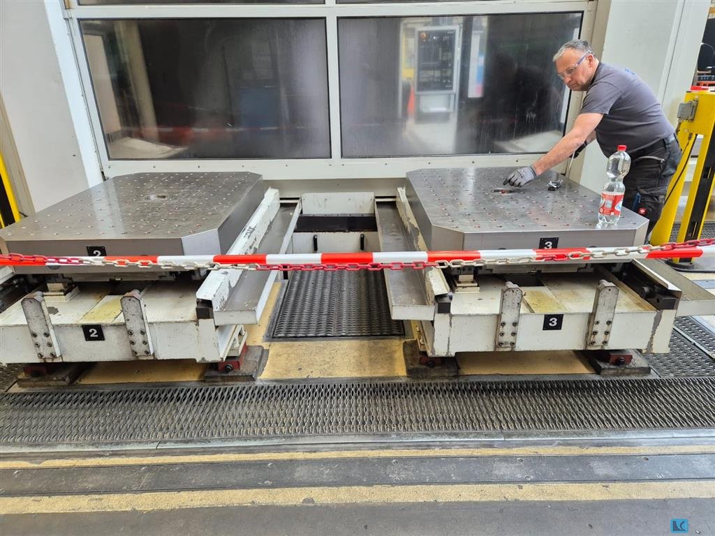 x-travel:450 mmy-travel:450 mmz-travel:450 mmweight of the machine ca.:14 tsize of pallet:320 x 320 mmnumber of spindles:2 Double spindle 4-axis machining center Horizontal4 machine platesRenishaw probeControl Siemens Sinumerik 840DWorking space (X / Y / Z): 450x450x450 mmLoad pallet / table max .: 300 kgAcceleration: 10 m / s²Rapid traverse: 60 m / minPallet size: 320 x 320 mmChip-to-chip time: 2.6 sWorkpiece height max .: 700 mmTool holder: HSK 63Tool places: 2x 60Tool spindle: 10,000 rpm, 95 NmSpeed increase to 18,000 rpmInfrared receiver for probe,Make Renishaw Vaf72a0pTool magazine with 60 placesControl panel on the workstationControl panel on the tool installation siteWorkpiece positioning stations can be rotated manuallywith hydraulic workpiece clamping 60 barPneumatic support control on the workstationAutomatic swing gateExtended coolant layer 70 bar / 1500I /VF 250 Coolant Cool ...