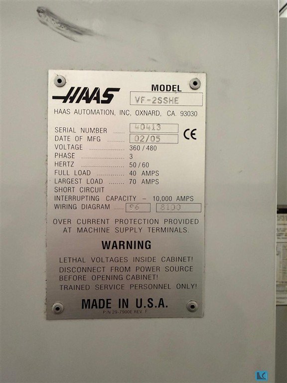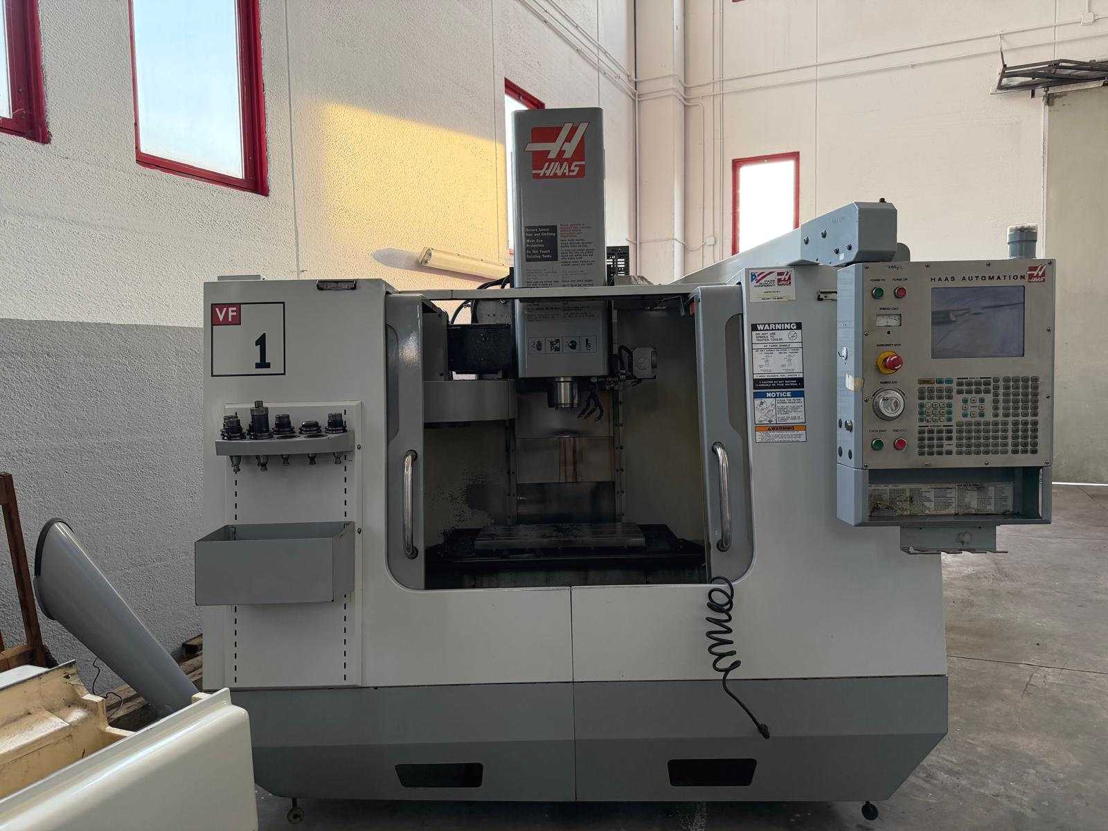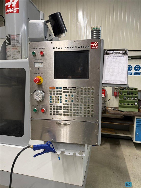 Hass VF 1 vertical machining center X-axis travel: 520 mm Y-axis travel: 420 mm Z-axis travel: 520 mm Table dimensions: 660 x 356 mm Maximum Table Load: 1,360 kg (static load, distributed) Spindle Mount: BT-40 Total Machine Weight: approx. 3,500 - 3,800 kg Floor Dimensions (W x D): Approx. 2,300 x 2,400 mm Maximum Height: 2,600 mm Auction-ID: A7-44885-17