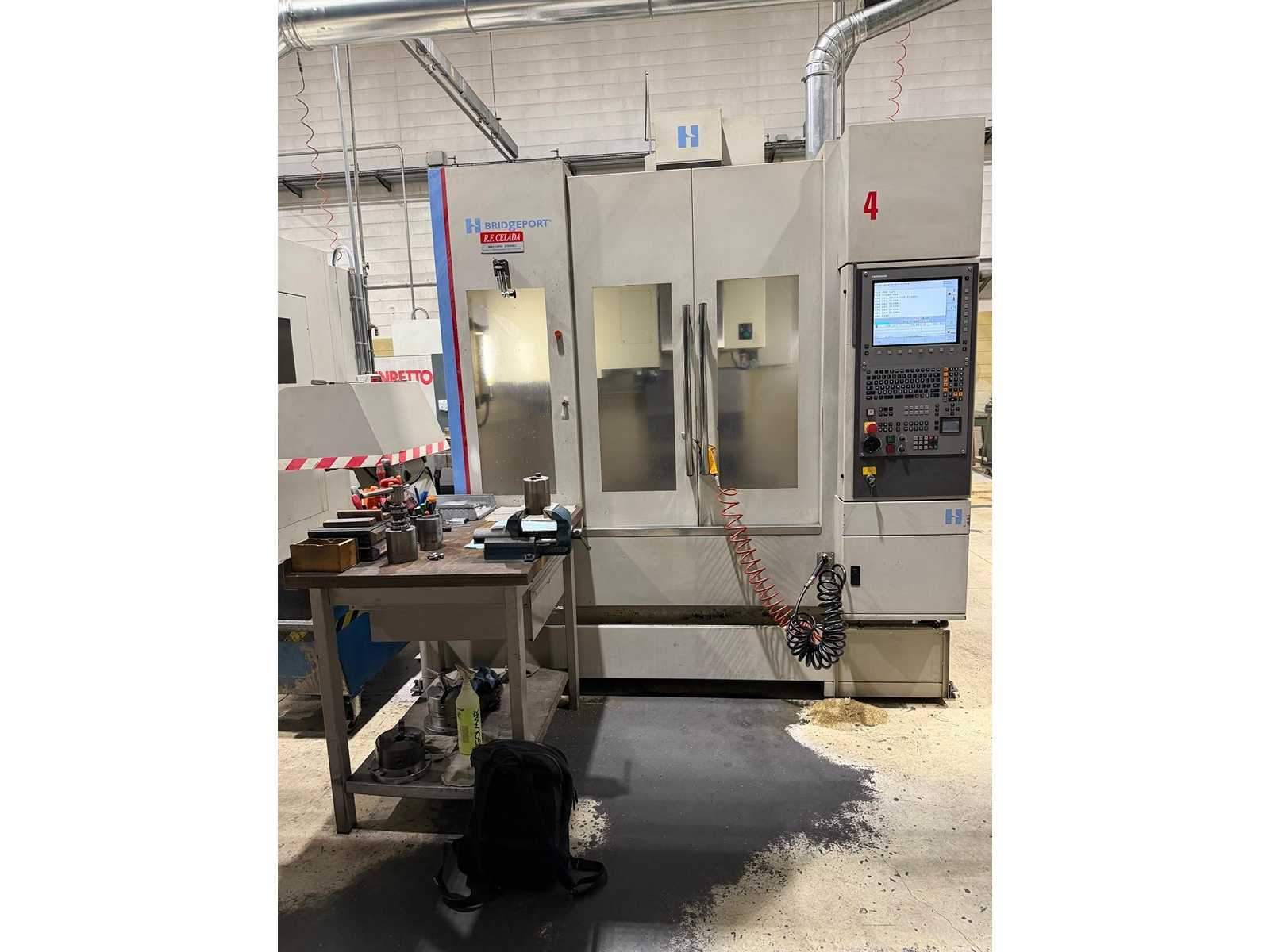 BRIDGEPORT XR 760 high-performance vertical machining center Structure: Thick cast iron with wide column design X stroke: 760 mm Y stroke: 490 mm Z stroke: 520 mm Table: 900 x 500 mm Max load: 600 kg Spindle: 12,000 RPM Connection: BT 40 Motor: 13 kW (S1) / 18.5 kW (S6-25%) Tool changer (ATC): 30 positions (quick changer arm) Guides: Linear roller with high load capacity Rapid: 36 m/min (X/Y/Z) CNC: Heidenhain iTNC 530 Accuracy: ±0.005 mm (Positioning) Weight approx. 6,750 kg Overall dimensions: 2400 x 2300 x height 2,400 mm Auction-ID: A7-44885-7