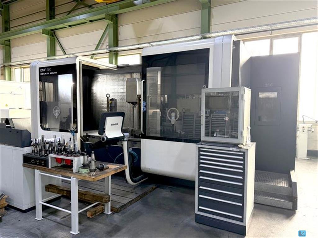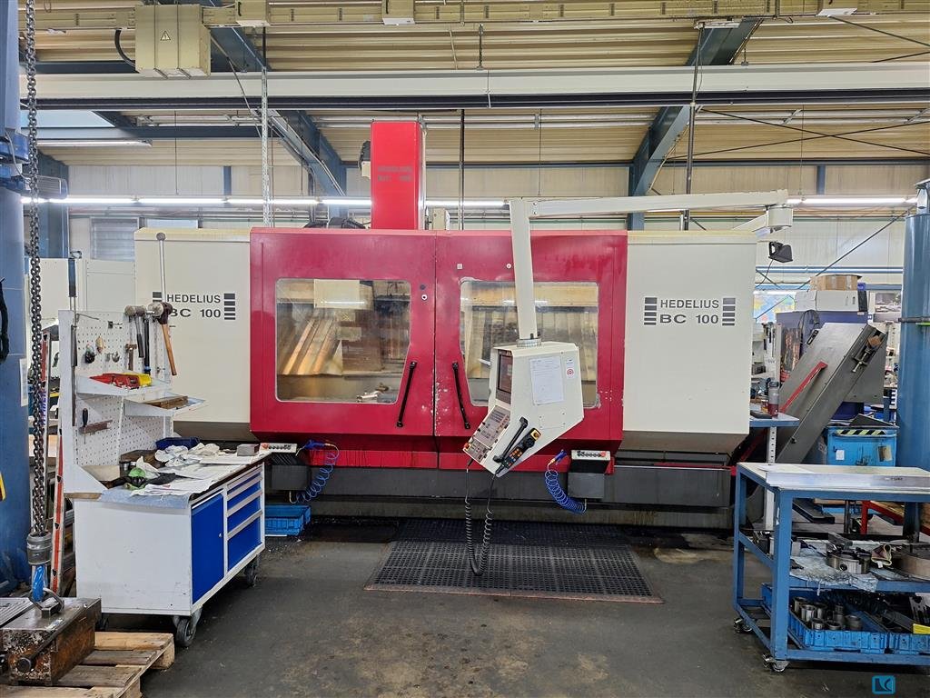 x-travel:1000 mmy-travel:1100 mmz-travel:810 mmcontrol:iTNC 530 HEIDENHAINturning speeds:18000 1/mintool taper:HSK 63 table surface area:1.000 x 800 mmmax. swing dia.:1350 mmmax. table load:1.000 kgtool magazin::273 Pos.rapid traverse:60 m/mintotal power requirement:86 kWweight of the machine ca.:18 tdimensions of the machine ca.:4,3 x 6 x 3,4 m5-axis simultan universal machining center,NC-rotary-table (C-axis) and B-axis (milling head),DDT-spindle for high torque (HT - max. 3000 rpm - 291/226Nm) and high speed (HS max. 18.000 rpm - 83/63Nm ),- internal coolant supply 50bar with chipconveyor and paperfilter,el. handwheel,oilmist suction,DCM collision control,Hours on counter:approx. 45.000h "machine on", approx. ca. 2.000h " HT-spindle on", approx. ca. 12.000h " HS-spindle on"NEW SPINDLE IN 09/2025 !