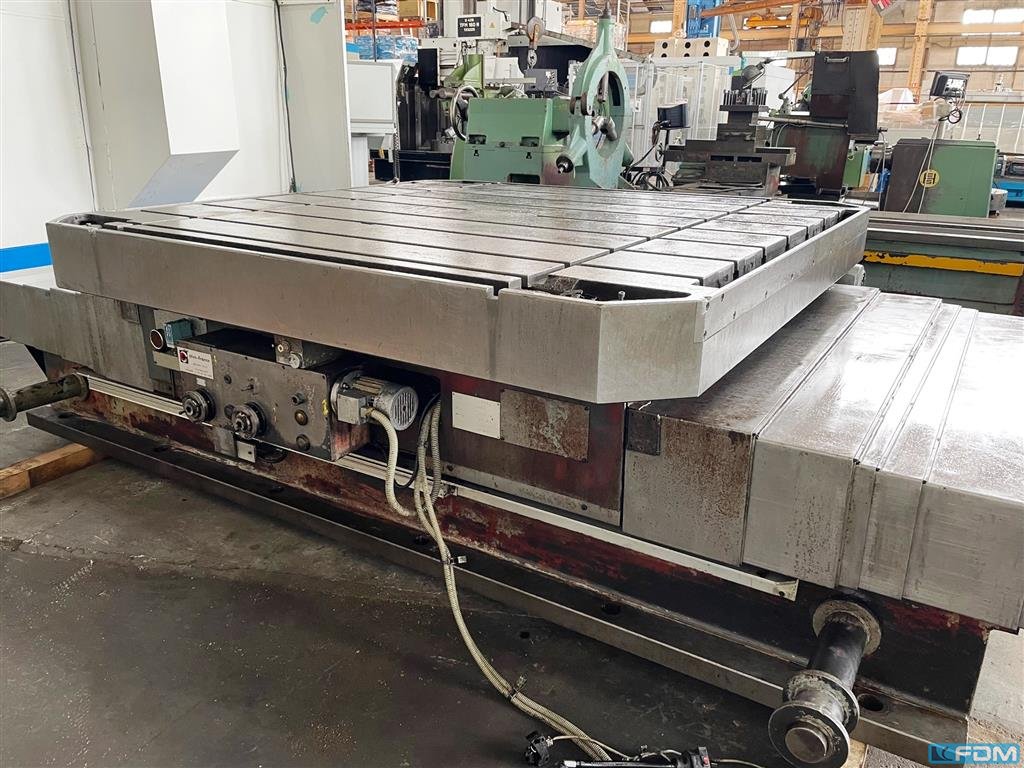 spindle diameter:130 mmspindle diameter:130 mmx-travel:2190 mmy-travel:1520 mmz-travel:1000 mmw-axis:1075 mmtable surface area:2000 x 1800 mmworkpiece weight max.:8000 kgspindle turning speed range:4,5 x 900 U/minspindle taper: ISO:50 faceplate turning speed range:4,5 x 180 U/minfaceplate diameter:785 mmrapid traverse::5000 mm/mintotal power requirement:40 kWweight of the machine ca.:35 tdimensions of the machine ca.:5,5 x 6,9 x 5,2 mMachine retrofit and overhould with TNC 360 Heidenhain in 2023 and stepless spindle speeds- table indexing 4 x 90°- facing head 785 mm- exhauster- various arbors and tooling