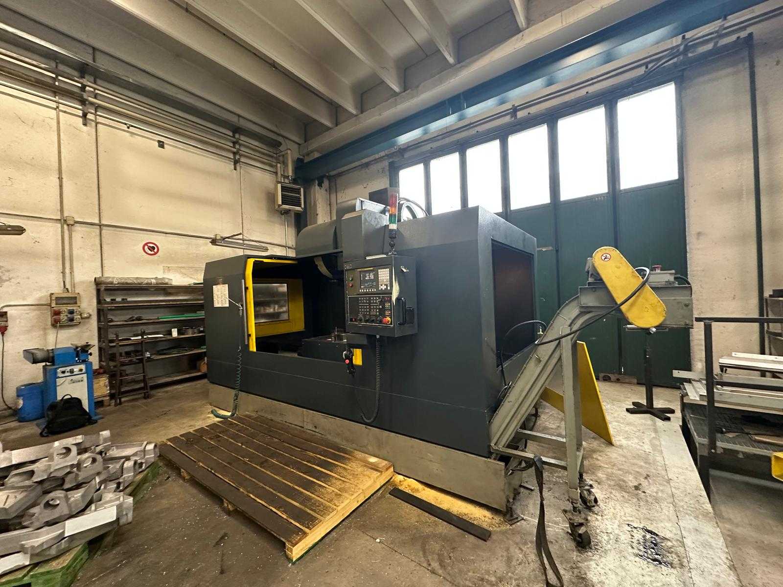 x-travel:600 mmy-travel:580 mmz-travel:530 mmdistance spindle center to column:630 mmdistance spindle center to table:100-600 mmmilling feed range:1-10.000 mm/minmax. table load:200/100 kgmax. tool weight:8 kgpositioning accuracy:+/- 0,01 mm:8000/15000 1/minspindle drive:7,5/11,5 /5,5 kWrepeating accuracy:+/- 0,008 mmweight of the machine ca.:7,4 / 7,65 tBrand-new CNC vertical machining center with CNC control FANUC or HEIDENHAINWarranty: 12 monthsMore information can be found in the Appendix.