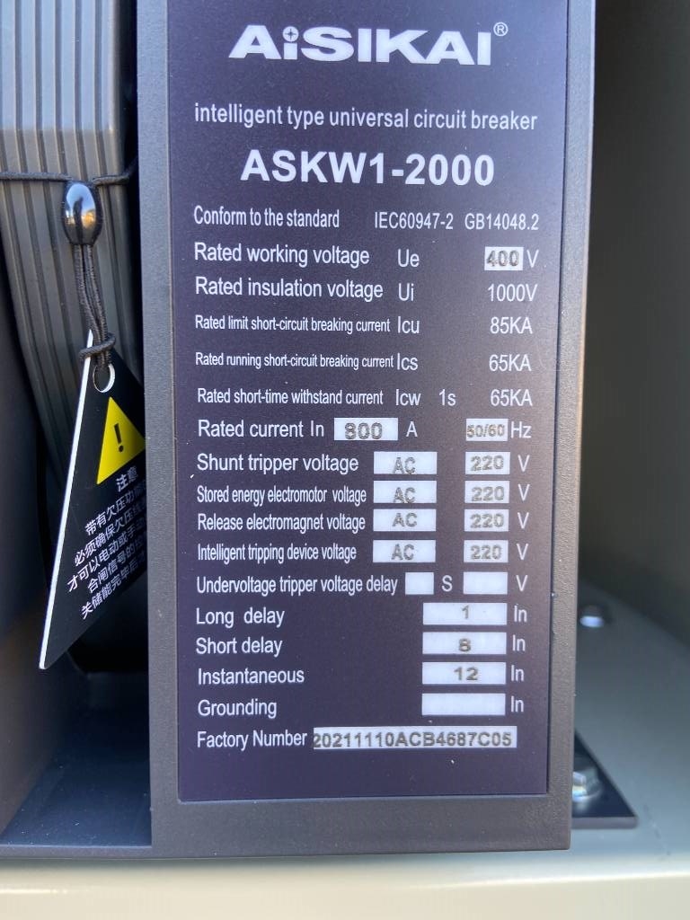 Diverse breakers beschikbaar:, Various breakers available:, , DPX-35010:, Aisikai ASKW1-2000 - Circuit Breaker 800A - € 1.980,- , DPX-35015:, Aisikai ASKW1-2000 - Circuit Breaker 1250A - € 2.200,- , DPX-35025:, Aisikai ASKW1-2000 - Circuit Breaker 2000A - € 2.750,- , DPX-35030:, Aisikai ASKW1-3200 - Circuit Breaker 2500A - € 3.025,-; Accessories: Rated working voltage: 400V, Rated insulation Voltage: 1000V, , DPX-35010 - Dimensions 630x420x1130 mm, weight 150KG, DPX-35015 - Dimensions 630x420x1130 mm, weight 150KG, DPX-35025 - Dimensions 630x420x1130 mm, weight 150KG, DPX-35025 - Dimensions 630x42