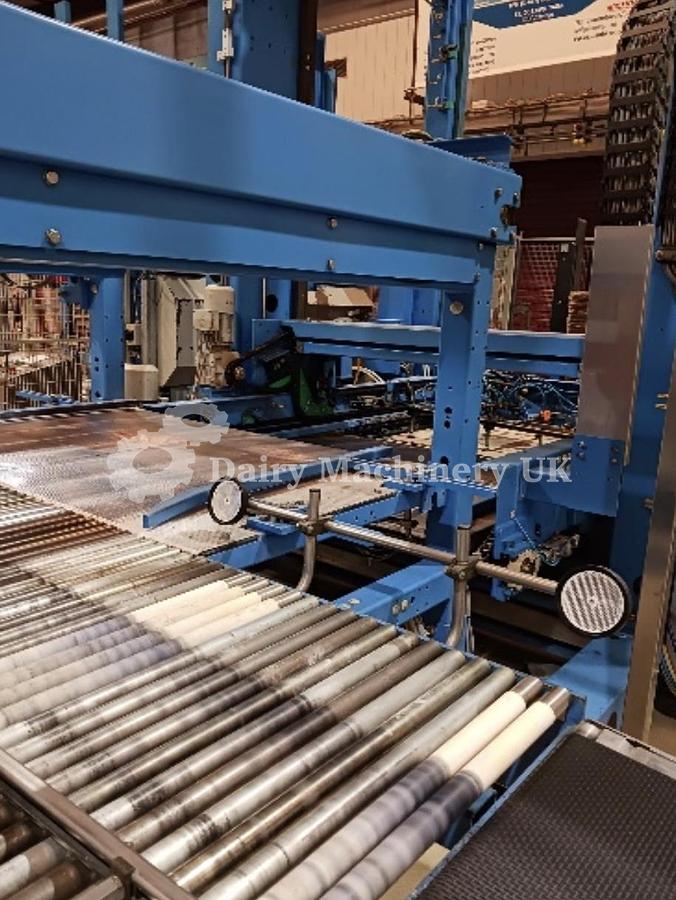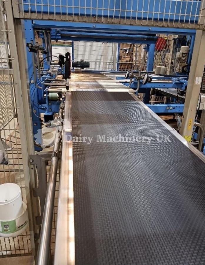 This Palletising line consists of, Box transport belts, KRONES, Type 465, Model Κ465-924, Y.o.M 1999, Maximum width 350mm/ total length 13m/ 6 pieces (2m/piece)/0.75KW- 400V/ control panel, Palletizer, KETTNER, Type BELADER PRESS ON, Model 99/0441/004, Y.o.M 1999, Available control panel (30 pulses/hour in 61.5L box), Empty pallet station with finished pallet exit roller conveyor, KRONES, Type 454, Model LPMT, Y.o.M N/A, Maximum number of empty pallets: 15pcs/ Available control panel/ 100pallets/hour, Strech Wrapping Machine, FRANPACK, Type 101, Model 991553, Y.o.M 1999, Available control panel, Protective barriers with safety switches, Available with the machines, Available: Immediately , Pallet Sizes: 100 x 120 cm , Capacity: 100 pallets per hour , Condition: Good