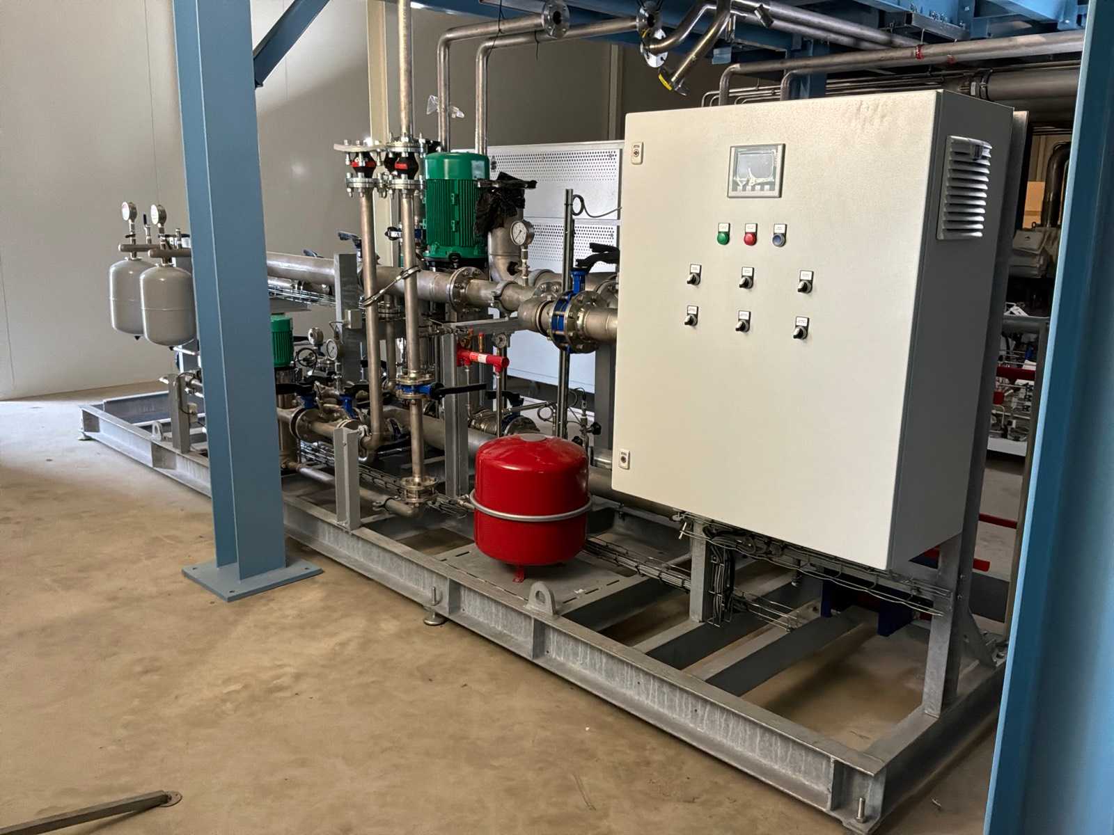 Unused!, skidmounted with 3x Alfa Laval” plate heat exchangers in various sizes, 3x Wilo” pump in various sizes, pressure vessels, built-on central switch cabinet and combined piping with valves Auction-ID: A1-43459-53