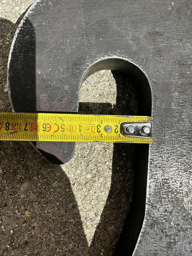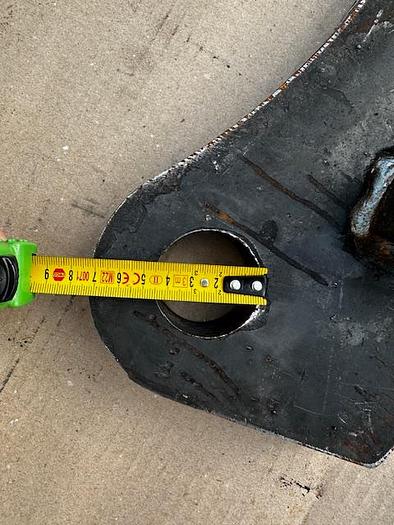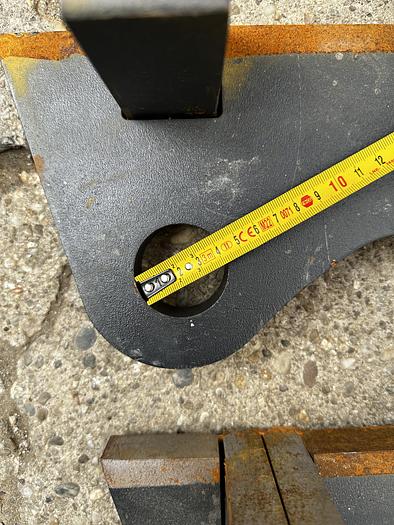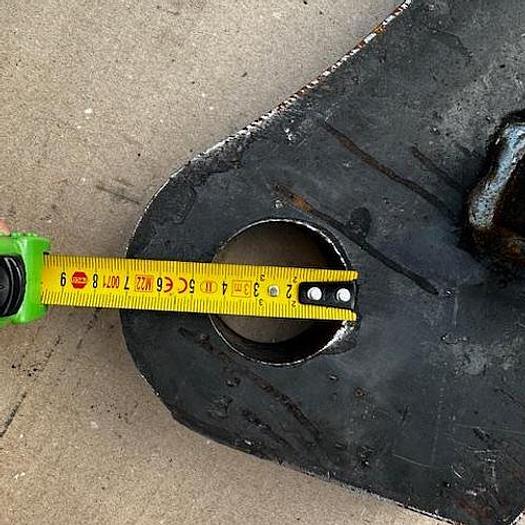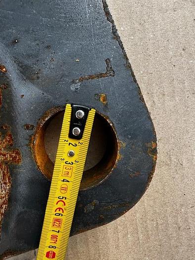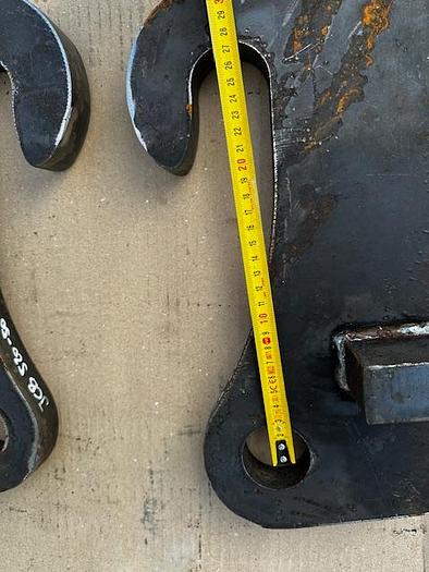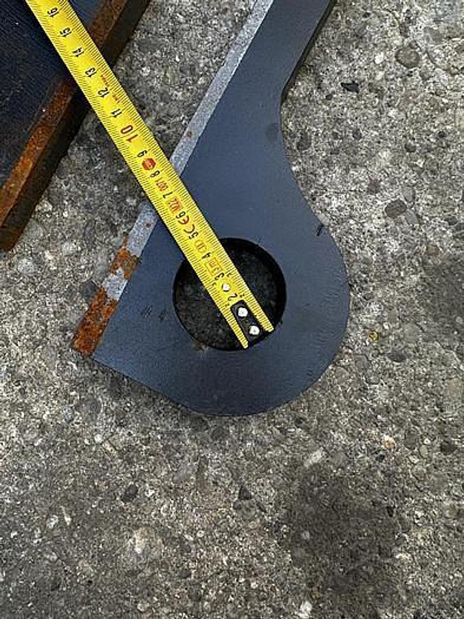 BIG weld-on hook suitable for Genie / Terex attachment, - Year of construction: 2025, - made of S355 steel, Dimensions:, Top bolt: Ã 32 mm, Bolt center: Ã 25 mm, Bottom bolt: Ã 35 mm, Bolt center-to-center distance: 330 mm, more recordings available!