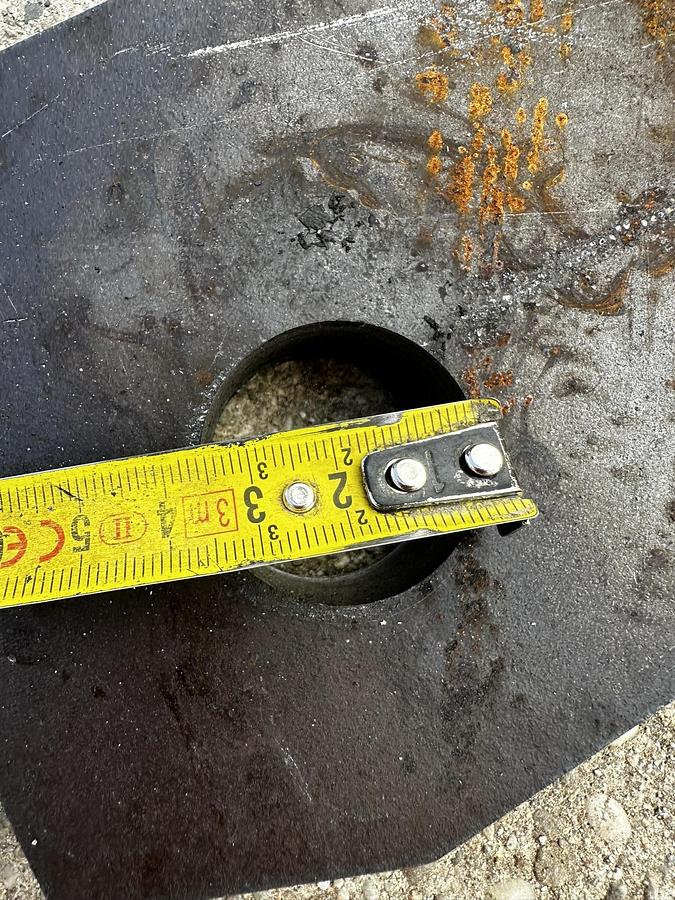 BIG weld-on hook suitable for Dieci Agri Farmer attachment, - Year of construction: 20255, - made of S355 steel, Dimensions of the mount:, Bolt diameter above: 61 mm, Bolt diameter below: 45 mm, Bolt spacing [Center - Center]: 350 mm