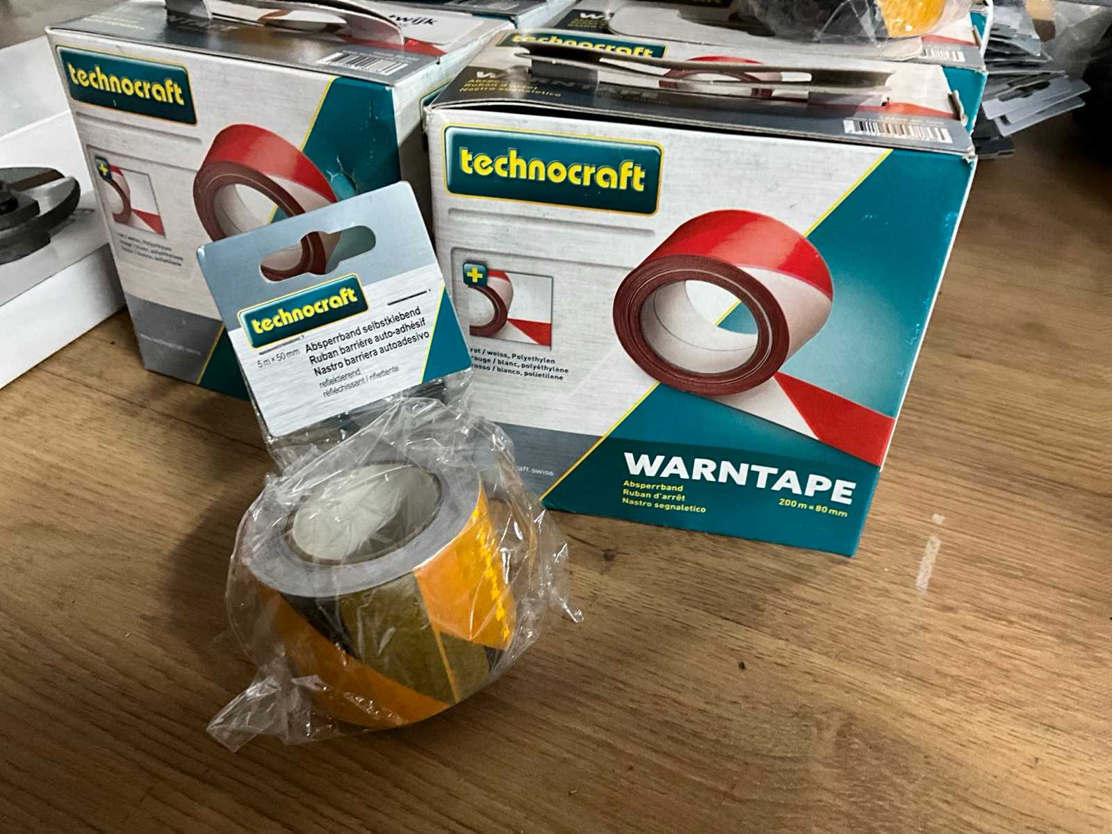 Including: 6x 200m x 80mm red and white ribbon, 11x 5m x 50mm reflective black and yellow tape Auction-ID: A1-41275-436