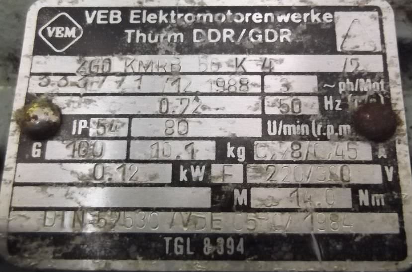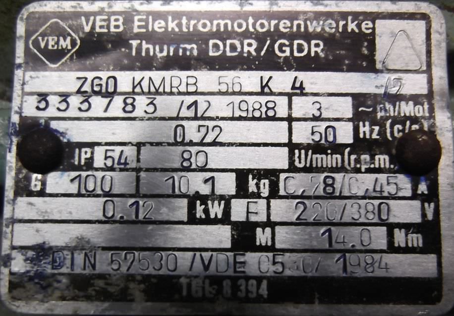 Gear motor 0.12 kW 80 rpm VEB ZGOKMRB56K4