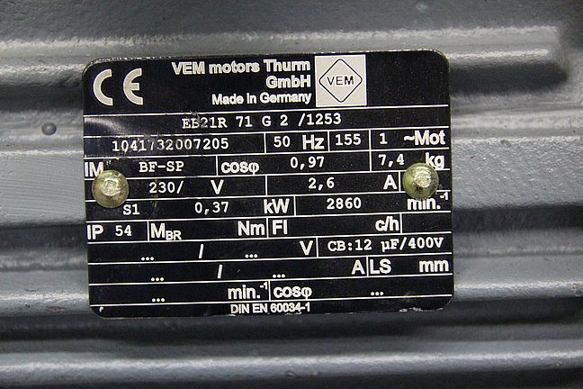 Tipo de máquina: Electric motor 0.37 kW 2860 rpm 220 V