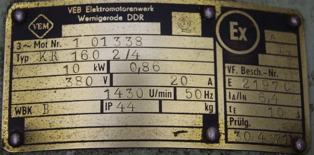 Tipo de máquina: Electric motor 10 kW 1430 Rpm