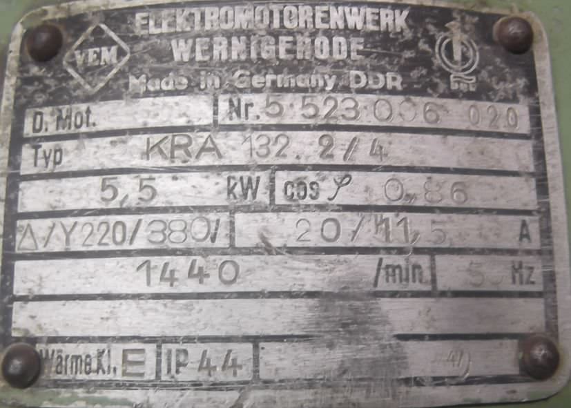Tipo de máquina: Electric motor 5.5 kW 1440 Rpm