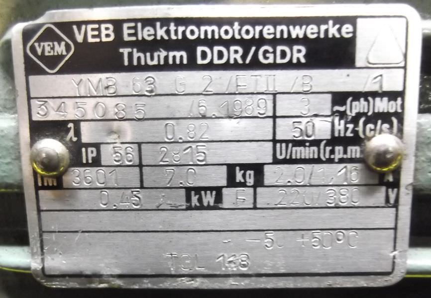 Tipo de máquina: Electric motor 0.45 kW 2815 Rpm