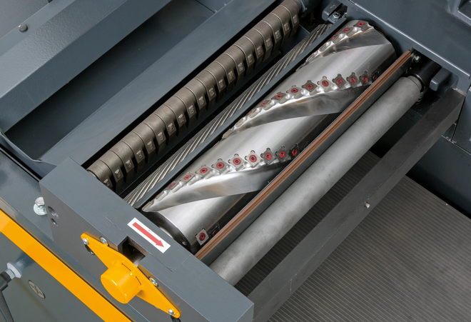 Working width: 410 mm; Planing shaft: spiral shaft ; Number of knives: 66; dressing table length: 2020 mm; Dressing stop angle adjustable: yes 45Â to 90Â; maximum clearance thickness planer: 230 mm; Height adjustment thickness table: electric; Planing thickness display: Digital display; Feed speed: 5.5 / 10 m/min; Feed roller: steel; Pull-out roller: steel; Table rollers: no; Motor power: 5.3 kW; Engine brake: yes, automatic; Suction port: 100mm; Machine length: 2020 mm; Machine width: 882 mm; Weight: 480kg;