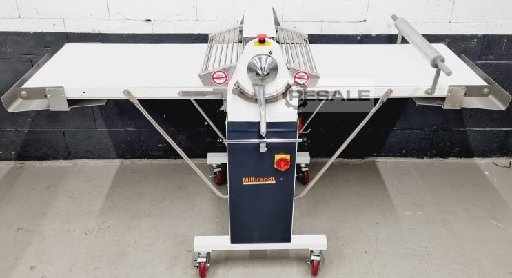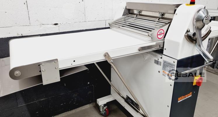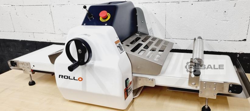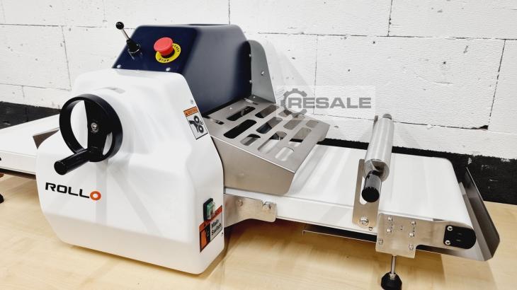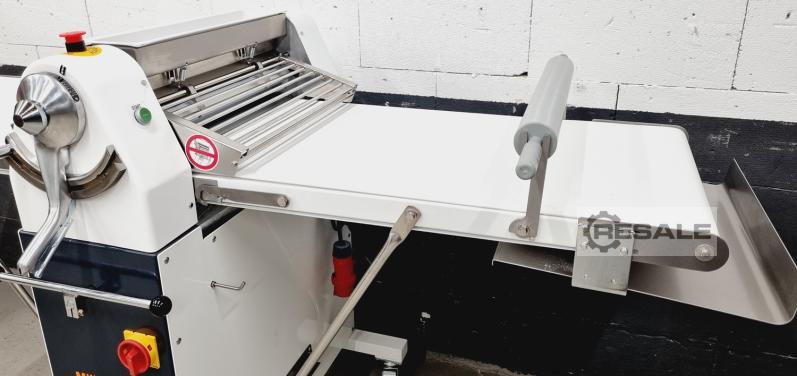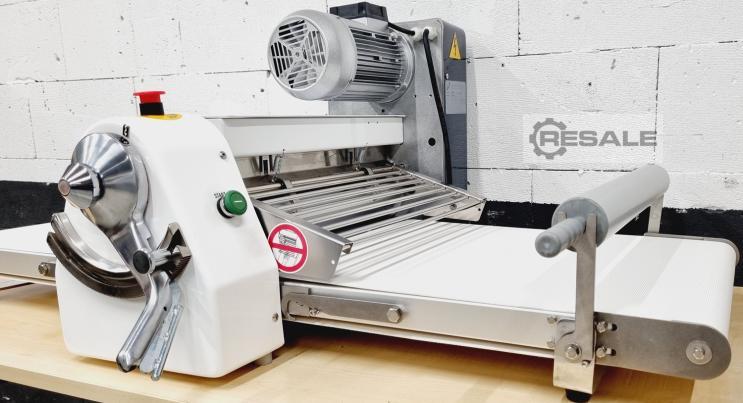 Baguete Long Roller SM 380 S Capacidade: mínimo 50 - máximo 1200 g com fitas de feltro para massas macias 3 rolos de alimentação para aumentar a tensão da massa Largura de rolamento: até um máximo de 750 mm apenas o DGUV V3 testado por nós Ligação: 400V, ficha 16A-CEE Máquina usada