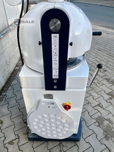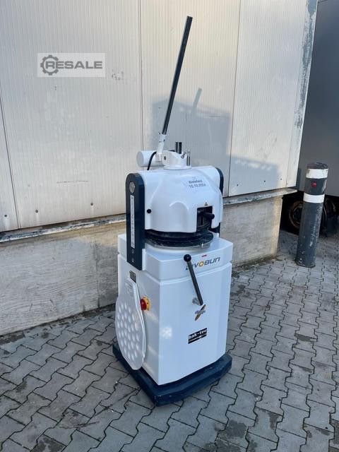 Máquina semi-automática de divisão e tecelagem de massas, Bun imprensa Modelo: Divobun 3-30 NEW tecnologia sofisticada ... já provou muitas vezes! Faca de aço inoxidável com posição de limpeza fácil! com 3 placas de tricô Sub-gama 25 a 80 gramas/peça Pitch 30 peças Máquina móvel DGUV V3 testado Ligação 400V, 0,75 kW, ficha 16A-CEE Dimensões: 600 x 700 x 1520/2200 mm, LxPxA Nova máquina com 2 anos de garantia + pacote de serviços Mais divisórias de massa em stock!
