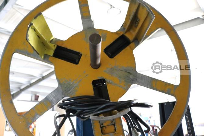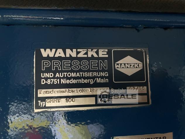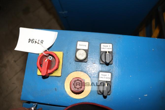 Desbobinador Tandem Condição muito bem utilizada, pronta a usar. Ano de construção 02/90 Fabricante: Wanzke Pressen Diâmetro interior: 220 mm Largura interna da correia: 200 mm A capacidade de carga por carretel é de 150 kg. em que o carretel deve ser aparafusado ao chão. Peso aprox. 450 kg Diagrama de fiação